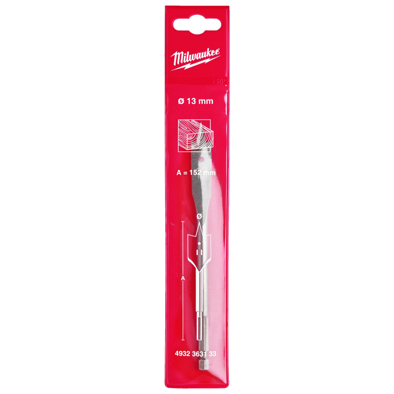 Wood Boring 1/4in Hex Shank Flat Bit 13x152mm