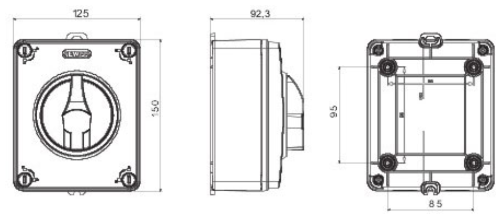 Isolator Rotary 2P Emergency IP69 Switch 16A 125x150x75.5mm