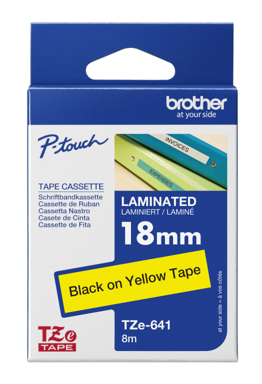 Labelling TZE Laminated Tape 18mmx8m Black on Yellow